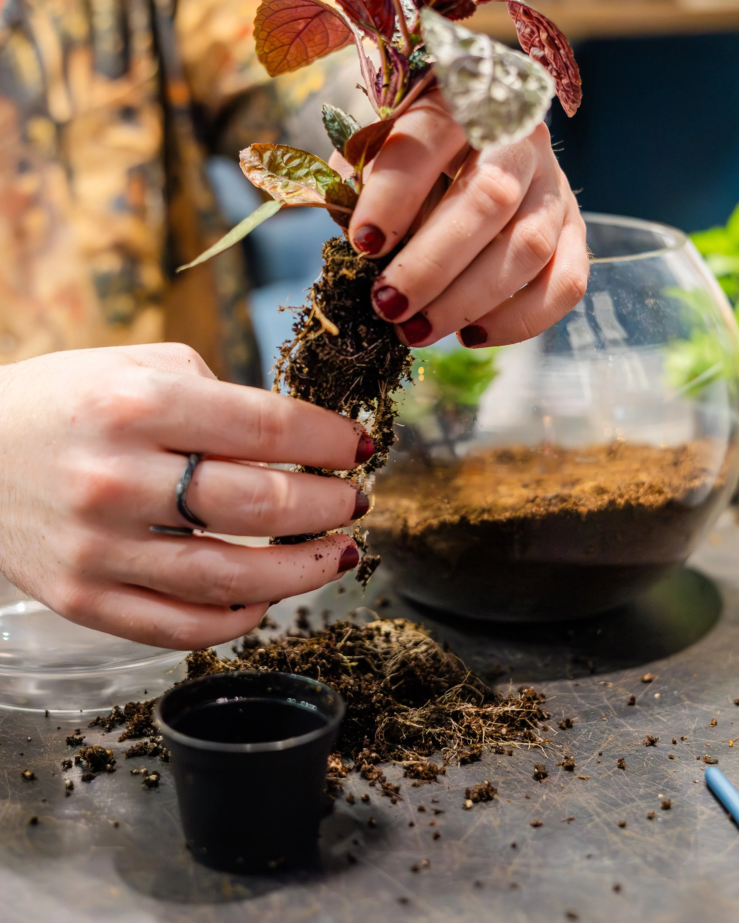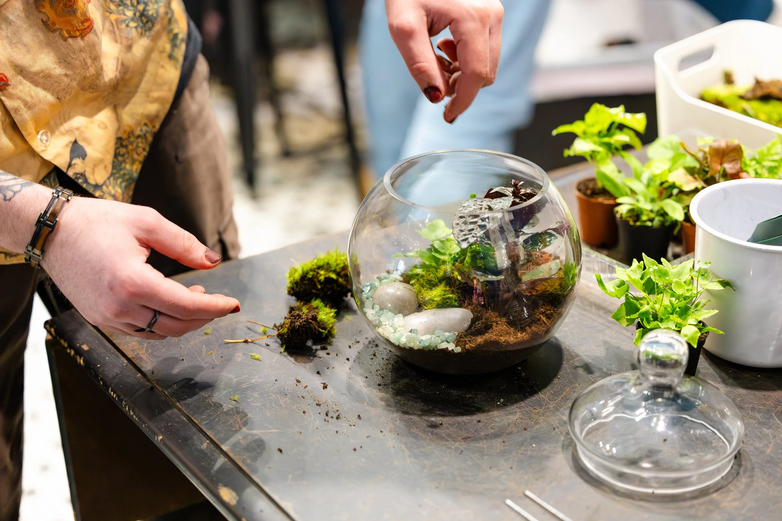 Let us join you and your group to build bachelorette party terrariums, birthday party preserved moss art, or team building plant propagation classes. The possibilities are endless!